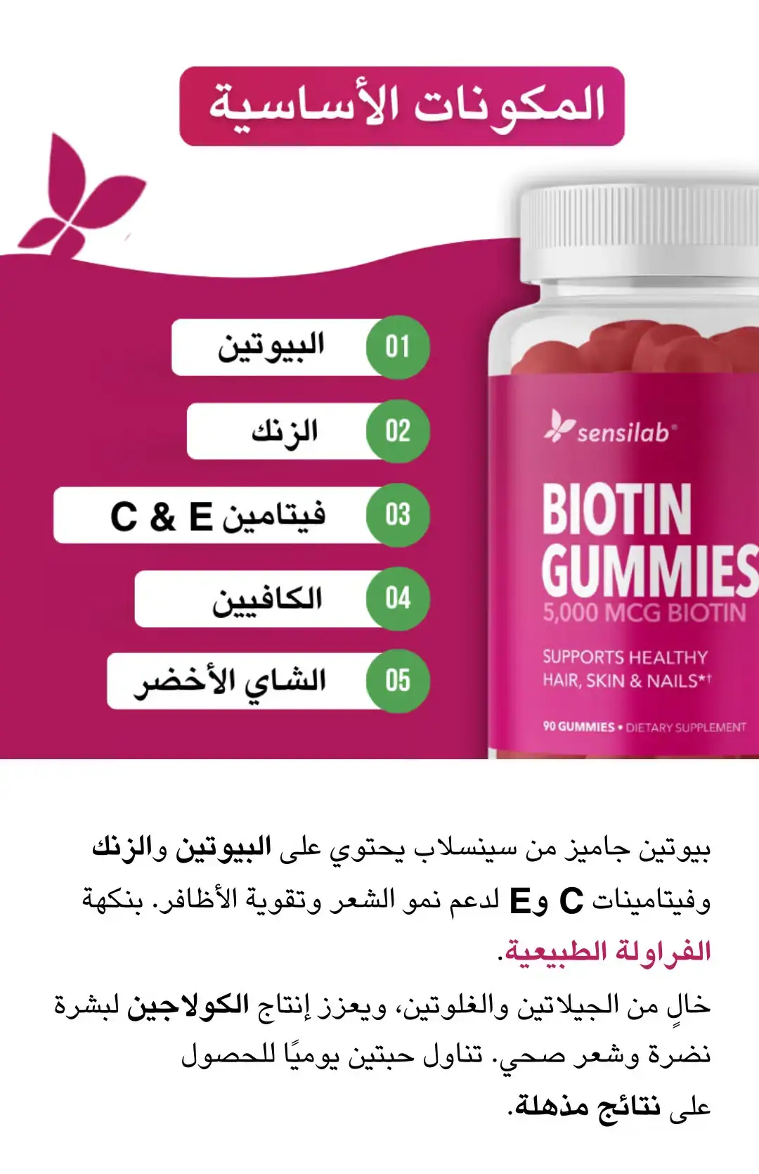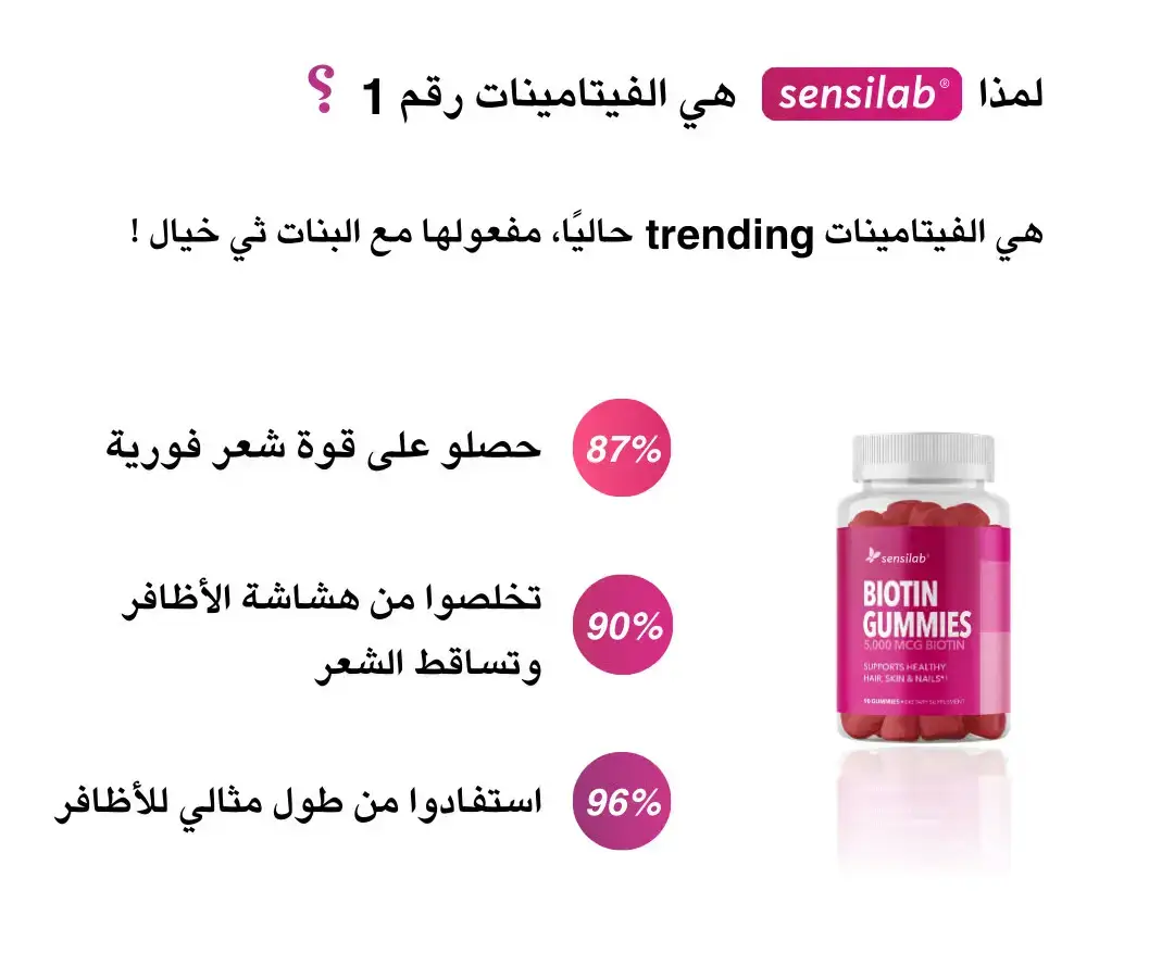 حلوى بيوتين جاميز من سينسلاب تغذي شعرك وأظافرك من الداخل. جرّبيها اليوم وشوفي الفرق بنفسك!